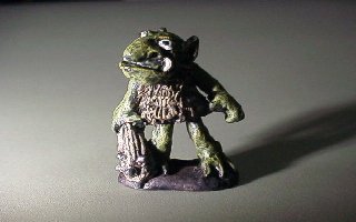 ファンタジーゲームの敵役ゴブリン君です。 こいつはCITADELのBARGAIN BOXという怪しいセットの1体です。 ゴブリンはゲームによっては剣や鎧で武装してたりしますが、私としては こいつのように、こん棒と毛皮ってイメージです。 どーです、なかなか味わい深い表情でしょ。 お気に入りの1体です。