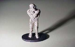 これはGRENADIERのFOLKLORE CREATURES OF THE NIGHT というセットの1体です。 映画で有名な、王家の墓とか守ってそうなミイラ男です。 映画のイメージが強いのであんまりファンタジーゲームって 雰囲気じゃあ無いですねぇ。 ゲームでも出会ったこと無いし。 こいつはなんか寒そうにしている貧弱なミイラ男です。