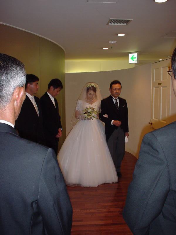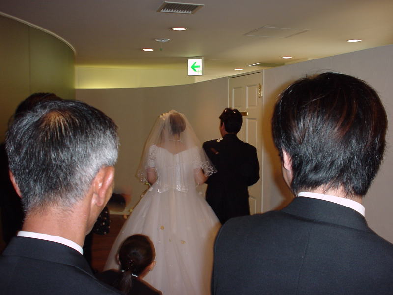 先ずは、お式の入場から。JRAR関係者のカメラ目線を交えつつ、とかやってたら新郎が通り過ぎちゃった...。(T_T)