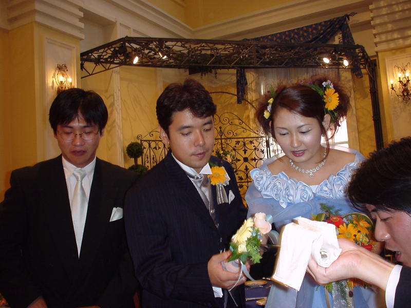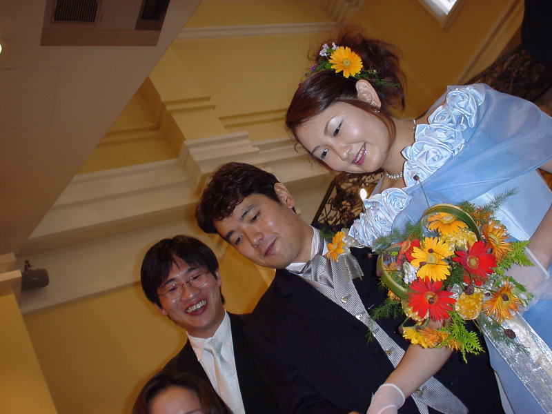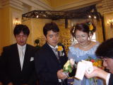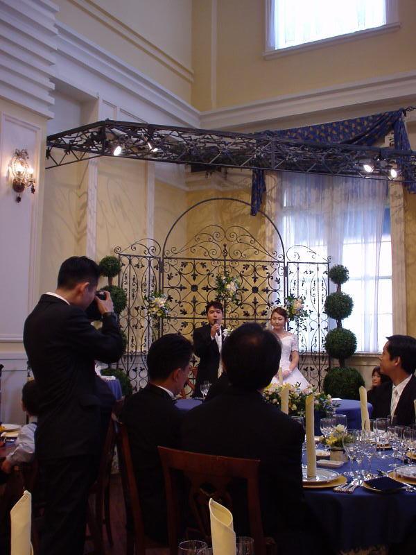 流れるような進行に機会を伺っていたのでが、ついに新郎新婦席へ突撃! う〜ん、お幸せに♪ <もぅ意味不明?>