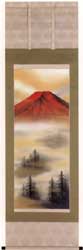掛軸の由来をたどる時、表装技術の進歩が有ったればこそですが、文化の発展と共に儀式の多様化や季節の移り変わりなどから 絵画(掛軸)にもその意味合いを要求することとなり 専門職(絵師・表具師)の誕生をみるようになりました。   掛軸や屏風が 容易に移動できる利便性を捉え、中国ではあらゆる用途に使われるようになる一方、日本では渡来してきたこの文化を風土にあったものに変遷を繰り返し、床の間に掛軸を飾るような今日に至っています。