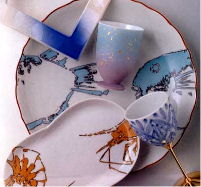 | ◆ 釉 彩 (YUSAI) 九谷焼のページへ 五彩の釉薬をうわぐすりのように全面に塗り付けた絵柄。二種類以上の釉薬を重ねて塗ることにより微妙な変化を楽しむことができる。 |