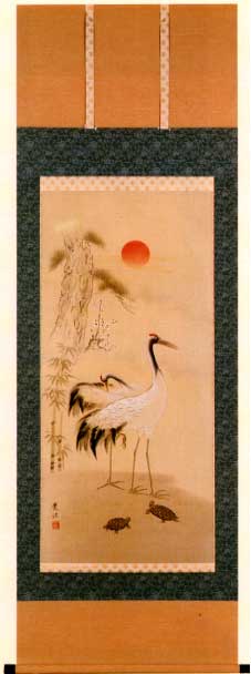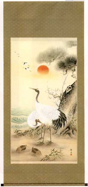 ◆奥村 寛治 先生筆(尺八立)評価12万円 無所属、創芸美術院、各展入選、人物・花鳥 【 松竹梅鶴亀 】 ¥140,000- |
