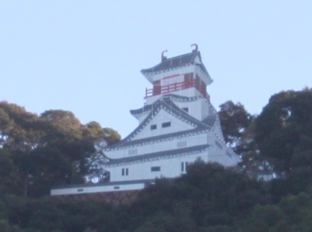この小谷城戦国資料館前にある天守骨格の件ですが、今年は10月4日にふるさと祭り開催との情報を忍びどもが探ってきたので(笑)見に行ってきました。 ただ、ほかの物件(敦賀市の民家にある手作り天守=No.1600参照)も数件見に行く関係で早朝7:00にみにいってみたら・・・・ 骨格自体も分解したまま放置されていて、外側に天守の絵柄をかぶせるような気配もなかったのでのでむなしく帰ってきました(泣) しかし、よく考えてみると、外側の絵柄などはすでにあるようなので作ろうと思えばすぐできるような気もしますね。もしかしたら、祭り本番時は天守ミニチュアができていたのかも知れませんね。 この報復は、今週末に予定されている黒崎一夜城攻めにて晴らしたいところです。(笑)