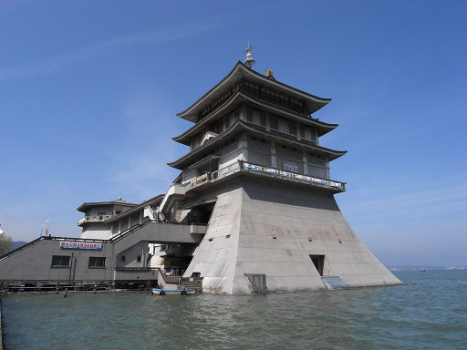 その1 諏訪湖の初島に設置されていたミニチュア天守は、 夏頃に上諏訪駅前に移転した模様です。 http://www.nagano-np.co.jp/modules/news/article.php?storyid=7761 まだ当分は設置されているようです。