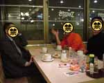 んで、あたしも実は30〜40分程遅刻で会場のデニーズに到着。すると明らかに危ないフテた空気を醸し出しているお三方が、大人数用の一角を占領して待ち受けていらっしゃいました。あけ美とは取り敢えず初見だったので「やーんはじめまして〜。なんか想像と違〜う。目が綺麗〜。もっと腐った魚の様な目だと思ってたわぁ」とかって軽〜くジャブを打ちつつ、あたしは取り敢えずメシ! お腹空いてたのよぅ〜。