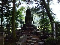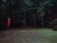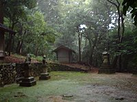 小西の陣跡からさらに南に下った小山の中に、宇喜多秀家の陣所跡がありました。「うわーなんか凄い森の中・・・」 そうなんです。小西とはうって変わって、宇喜多の陣跡はうっそうと茂った森の中にありました。宇喜多といえば兵17000の西軍一の大部隊。こんな所に布陣していて、うまく兵の統率ができたんでしょうか? ・・・と思いきや、今と違って当時はもう少しひらけていたそうです、このあたり。本陣はこの辺でも、兵站は天満山の山裾全体までのびていたんでしょうね、きっと。 ------ ちなみに絵巻での小西行長・宇喜多秀家隊の奮戦の模様は、以下の通りです。 (ナレ) 『 午後十時、合戦が始まってから二時間がたちますが、戦いの行方は依然として見えてきません 』 (ナレ) 『 小西行長隊は、織田隊、古田隊、寺沢隊を相手に一歩も引かぬ激闘を展開しています 』 (ナレ) 『 宇喜多隊は明石全登ひきいる前衛隊が槍ぶすまを作って激しく前進、一時は福島隊を五百メートルも後退させました。血相を変えた福島正則が、「退くな、退くな!敵に後続の兵なし!恐れずに返せ!」と叱咤激励してようやく反撃にでて、今度は宇喜多隊がじりじりと後退します。 』 (ナレ) 『 こうしたはげしい一進一退のありさまを、関原軍大成は、「秀家卿の太鼓の丸の旗と、正則の山道の旗を退く事、二、三度に及びたりや」と記しています。まさに壮絶な攻防戦です 』 ( 合戦絵巻2000、原文より ) 霧ではないけれど、じとっとしたこの雰囲気。林の隙間からは鈍い光が差し込んでいる。 先ほどは雨で愚痴ったけど、多分400年前の当日の朝と一番近い光景だ。 「ちょうど朝の7時過ぎ・・・」 秀家公はいったいどういう心境で、9月15日の朝を向かえたのだろうか・・・・。 --------------- 「色々と案内していただきまして、本当ありがとうございました」 「次の機会には、どっかの隊の一員としてお会いしましょう!」 あき殿とは関ヶ原駅で別れて、私は関ヶ原中学へと向かいました。 |