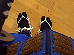 昨日履いていた草鞋をつける。この草鞋・・・足の指が底面からはみ出してるんで、地面が濡れているとすぐびしょびしょになりそうだ。 最初つけたときは、「こんなんで歩けるんかいな?」と思ったほど、そこが薄い。いや、薄いんではないのだろうけど、地面の凸凹がダイレクトに足裏に伝わってくる感じだ。「昔の人はこれで東海道を踏破したのか?凄いね。小石とかふんずけたら痛いだろうなぁ・・」 ・・・とまあ思ってたんですが、しかしいざ歩いて見ると、これが実に歩きやすい!これは以外でした。地面からの衝撃は確かにあるのだが、何よりも軽い事がすべてに勝ってます。さくさく軽快に歩けました(^^ ![]() (刀を抜く又五郎→)