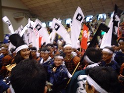 ![]() ![]() その大垣駅前武者行列の様子を、梵天丸殿が送ってくれました。 ■上段左から観衆の中を行進する石田三成、島津隊、宇喜多秀家。 ■下段の白馬に乗ってるのが小西行長です。 おおっ、唯一の大垣の写真だ。ありがとうござりまする。 ( photo by 梵天丸殿 ) ちょうど折り返しのところで、道路の真ん中の中央分離帯にまで入ってきて写真を撮ってる少年を見かけた。 「うむ、少年よ。その気持ちは十分分かるぞ。そんな所まで入ってきてはいかんが、俺も立場違えばそうやって写真を撮りまくっているだろう・・」「さあ、思う存分撮るがよい」私は顔をきりりと引き締め(笑)、胸を張って斜め45度を向いた。 しかしカメラは少年の胸の位置で止まったままだ。よく見ると、真後ろの大谷吉継を撮りたかったようだ・・・おい(笑) 雨はすっかり上がっていた。ところどころつまりながらも、ゆっくりと進む各部隊。 この行進が終わるといよいよ戸田隊としての2日間も終わる。少し寂しいが仕方のないことだ。足は結構疲れていたが、もうひと踏ん張りしなければなるまい。大将が小さい子に手を振っている。武者行列を通じて・・・ もちろん見に行くのも楽しいが、参加することでまた違った面白さを発見できた。この機を与えてくれた関ヶ原にありがとうと言いたい。 ![]() 1時間ぐらいかけ、駅前メイン通りを一周して、行進が終わった。 舞台挨拶が行われている。家康役の宍戸氏が挨拶で「いや〜、セリフを必死で覚えてきたんですが、アナウンサーに全部言われちゃいました」と、感想を語っていた。「それではこれで大垣の東西武者行列を終了いたします」アナウンスの声で2日間にわたる武者行列が終わった。 一斉に大垣城ホールに向かって歩き出す→ この後、参加武者800名は、エピローグセレモニーに参加するため、大垣城ホールへと歩き出した。 ![]() 大垣城ホールは、行進を終えた武者が座ってひとときの休息を得ていた。 やはり皆疲れた顔は隠せない。かく言う私も、ひとたび座ってしまうとそのまま横に寝転がりたいほど睡魔が襲ってくる。この2日間で結構歩いたはずである。大垣城ホールでまだなんかやるのだろうか? ・・・と思っていると、前の舞台に大将の方が続々と上がって来た。徳川家康役の宍戸氏、石田三成役の辰巳氏、そして我が戸田公もいる。まさに全員集合である。 市の役員の方の挨拶がはじまる。「皆様、本日は大変お疲れ様でございました。今回のこの交流を21世紀につなげていきたいと思います」ボーっとした頭で聞いていると、役員にひき続き宍戸氏にマイクが渡された。 「私は今日、行列で言うセリフを一生懸命練習してきました」 と話し出す。 「鉄砲・・・放て〜〜〜〜〜」 素晴らしい大音声だ。さすが宍戸氏、役者はやっぱり違うよ!と、感心する又五郎。 「でも私がせっかくセリフを覚えてきたのに、ナレーションの方が全部言ってしまいました。はっはっは〜」 あ、錠がまたさっきと同じことを言ってる・・・。 笑ってはいるが・・・ わかるよ錠。よっぽど悔しかったんだね(笑)。 それに続いて辰巳氏も挨拶を行った。さすが大役者二人。皆がわいている。 役者の方の挨拶は、確かに最後のシーンに花を添えた。しかし・・・ 私にとっての今回の主役は、やはり大将「戸田重政公」であり、戸田隊の面々なのだ。それは各隊の面々もそうだったと思う。フィナーレは全体としては大いに盛り上がったが、やはり潜在的に欲しかったのは大将と同隊員の一言だったのである。向井佐平次が仁科盛信のためにではなく、直属の足軽大将、立木四郎左衛門の為に死のうとした。よくわからないが、多分そういうことなんだろう。そんな事を考えながら宍戸氏や辰巳氏の話を聞いていた。 最後の挨拶が終わり、司会の人が「それでは最後の勝鬨を上げて、終わりにしたいと思います」と言った。 「それでは行きますよ〜」「えい!えい!おー!」 今回の武者行列で何回この言葉をいったのか(笑)。最初に発した時は、「なんちゅうベタな掛け声だ」とちょっと恥ずかしくもあった。しかし今は違和感なく言える。もうすっかり慣れてしまったこの掛け声が大垣城ホールに響くのを聞いて、ああ、これで本当に終わったんだなと思った。 ・・・・と、いろいろしんみりと思いもしたが、やはり最後の最後だ! 景気良く終わらなければ、嘘である(^^ ![]() 「きゃ〜〜〜〜!琢郎!」(笑) ←退場していく琢郎を、列を掻き分け掻き分け超ミーハー的に撮った 「石田琢郎守三成が、笑顔で大観衆に送られて退場していく」の図(笑) うーん、やはり超ミーハー的大盛り上がりだ(^^ゞ ちなみに徳川宍戸守家康の写真も撮ろうとしたのだが、まともなのが1枚もなかった。今回はことごとく縁がなかったようです(^^ゞ ![]() そして同じく戸田隊の面々とも、大垣での最後の1枚を写す。 私は刀を抜いて体の前につき、できるだけカッコいいポーズをとった(笑)。 ---------------