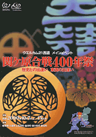 ■ウエルカム21西濃 メインイベント『 関ヶ原合戦400周年祭 』 〜歴史との出会い 東西の出会い -- 会期 -- 西暦2000年10月7日(土) 〜 15日(日) -- 会場 -- 岐阜県大垣市・上石津町・垂井町・関ヶ原町・墨俣町 関ヶ原合戦に参加した武将のゆかりの市町村等にも参加を呼び掛け、 「歴史」をふりかえると同時に、未来へ向けての「平和」と「交流」を誓うイベントを開催します。 関ヶ原合戦を400年後の現代に投影し、史実にあわせて壮大な合戦絵巻を描き出すとともに、 様々な分野の古今東西を集め、「平和の時代の東西合戦=東西交流」を大々的に展開します。