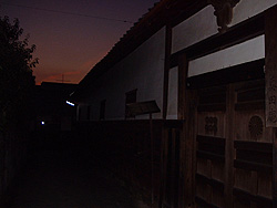 というわけで、大坂を目指して1人真田庵をでたのが、夜の7:30のことでした。■PM7:30 出発〜 夕闇に沈む真田庵 →