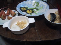 ●夕食 今日の夕食は、玄米ご飯と彰がもらってきた漬物とトマト。こんな夕食の方が彰は「すっきりしていていいなあ」と喜んだりする。すっきりしすぎているかも。でも私も漬物とご飯があれば満足だ。自分でおいしい漬物を作れるようになるといいんだけど。