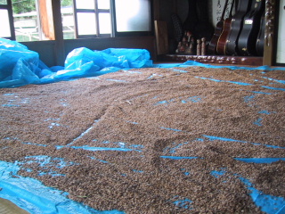 ●干すせっかく収穫したものをそのままにしておくと、ダメにしてしまうので、とりあえず家の中に干しました。