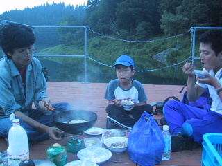 ●もう帰ろうよ大柳沼で夕食。東さんが買ってきてくれた餃子を焼いて食べた。ハルキが水が怖いのか、熊が怖いのか、暗いのが怖いのか、「早く食べ終わって早く帰ろうよ」と何度も言っていた。「この場所だと食欲がない」とも。