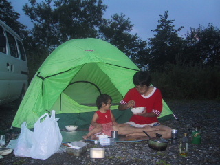 ●峠ここは湯浜峠というところです。宮城県かな。夕食のカレーを食べています。夕方からちょっと一泊旅行に来たのです。