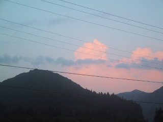 ●夕方の雲山があるので、夕焼けを見られることは少ないけど、ピンクに染まった雲がきれいでした。