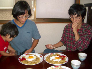 横手は「横手やきそば」で有名なところで、やきそば屋だけでも数十件あるのだとか。杉山夫妻は肉玉子入りやきそばを注文。トッピングは福神漬。おいしかったです。