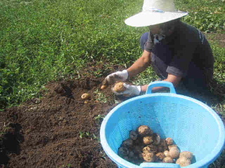 ●イモ堀り今日は、ジャガイモ堀り。大きなイモがゴロゴロ、ってほどではなかったけど、一年間ちょっとずつ食べる分くらいはあるでしょう。