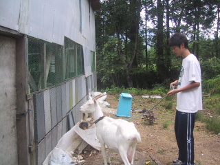 ●ヤギをしまう夕方にはモモちゃんを小屋にしまう。モモちゃんも大人しくついてきていました。