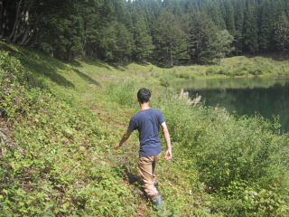 ●道を見失う途中、道を見失って、斜めのところを歩いていたけど、無事道に戻って、沼を一周することができました。