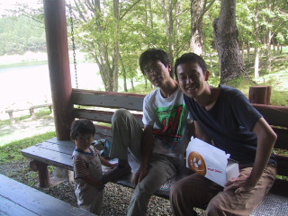●大柳沼でドーナツ広島からやってきたウエマツ君。おみやげにドーナツを買ってきてくれたので、大柳沼でお茶にした。その後、沼の周りを散策。