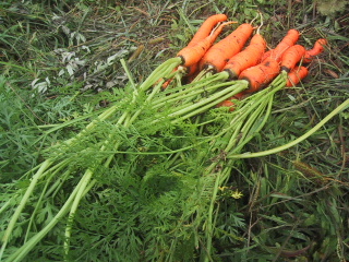 ●人参少しずつ人参を収穫しています。家で作った人参は形は悪いけど、味があって、ほんとおいしい。