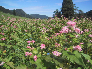 ●赤ソバ今年も赤ソバをまきました。でも管理機で軽く耕した後に、ばらまきをしたら、草がすごくて。でも青い露草の中に、赤い花が咲いていて、見ようによってはきれいにも見える。