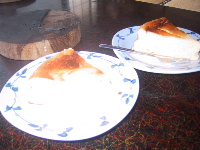 ●チーズケーキAさんに教えてもらったレシピでチーズケーキを作ってみたら、自分が作ったとは思えないくらい上手にできた。チーズと卵は自分の家の。コーンスターチと粉砂糖はAさんがくれました(Aさんありがとうございました)。
