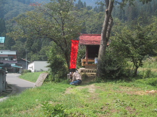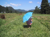●家の前の稲架(ハサ)家の前の牧草地にハセを作っています。下の集落の人がやっている。午後になったら、刈り取られた稲が次々運び込まれて、ハサにかけていた。この家の稲刈りは毎年、村で一番早いくらい。