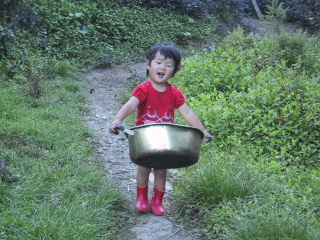 ●よいしょ、よいしょ搾乳用のモモちゃんのエサを春が運んでくれています。しかし、途中で休んで、中のエサを味見していた。