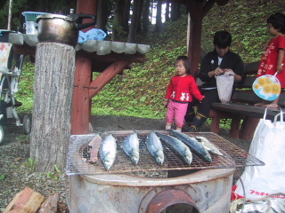 ●秋刀魚秋刀魚をいっぱい持ってきてくれたので、炭で焼いて食べた。脂が乗っていて、炭で焼いた熱々を食べるのはとてもおいしかった。