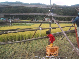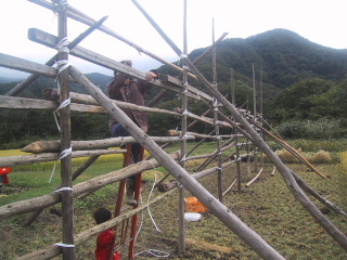 ●稲刈りまずハセ作りから。今年で5回目でやっと作り方もわかってきました。