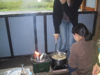 狭い直売所の中でテキパキと秋刀魚を焼いて、芋の子汁を作ってくれました。寒い日だったので、熱い芋の子汁がおいしかった。