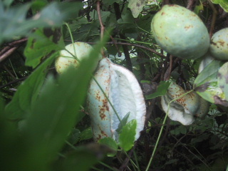 散歩がてら、アケビ採り。白い甘いものを歩きながら食べました。