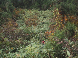 やまぶどう採りにやってきました。チラリと見える赤い帽子が彰。この場所でたくさん採ったことがあるのだけど、今年はあまりなかった。