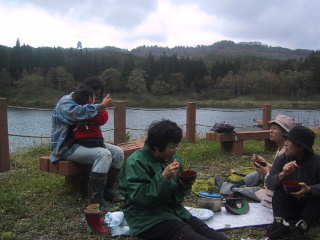 九州からこうちゃ姉ちゃんがやって来ました。おにぎりと豚汁を大柳沼で食べたのだけど、風が吹いて寒かったー。