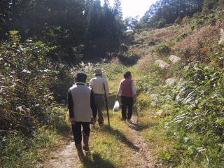 卵の配達があるので、ランプの宿を朝早くに出ました。後ろの沢沿いの露天風呂に入っているのが、うちの親たち。