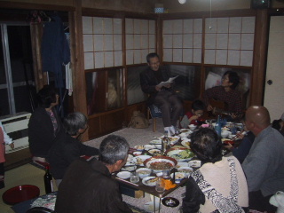 夜は、稲川町の高橋さんに来てもらって、朗読会。秋田弁の憲法9条や、昔の子どもの作文などを柔らかい言葉で読んでくれました。