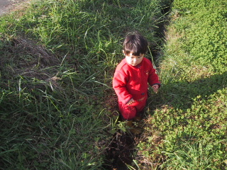 ●水遊び春の背がさらに小さくなっているのは、水路にはまっているからです。水でバシャバシャ遊ぶにはちょっと寒いと思うけどね。