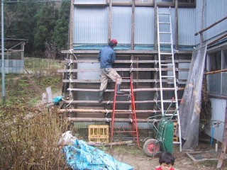 ●冬囲い五里台の他の家はとっくに終わってしまっているのだけど、やっと我が家も囲いを始めました。暖かいので、ヒモを結んだりするのが楽。