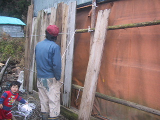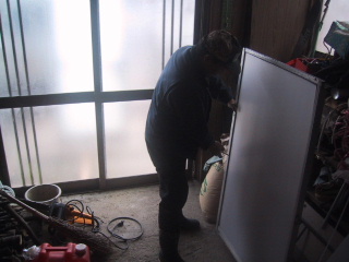 9月の台風で、窓が外れて、窓ガラスが割れてしまったのをそのまま放置していたら、最近、冷たい風が入ってきて、さすがに寒くなってきました。ガラスは高くて買えないと思っていたら、ろくさんがサッシにダンプレートをはめ込んでくれました。