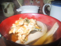 もらった小麦で彰がさっそくうどんを打った。切る時に春にジャマされて太くなってしまったけれど。モチモチして食べ応えがあっておいしかったです。