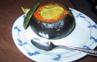 ●スイートポテトinパンプキン さびしい2人暮らしの及川さんとやす君を夕食に呼んだのですが、及川さんがデザートを作って来てくれました。自家製のカボチャとサツマイモで、カボチャのスイートポテト詰。おいしかった。