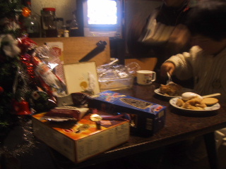 ●クリスマスプレゼント今日は、せっかくのクリスマスなのに、春の機嫌が悪くて、あまりよい日ではなかった。でも家に帰ったら、お菓子のプレゼントがたくさん届いていたので、ずいぶん楽しい良い日になりました。